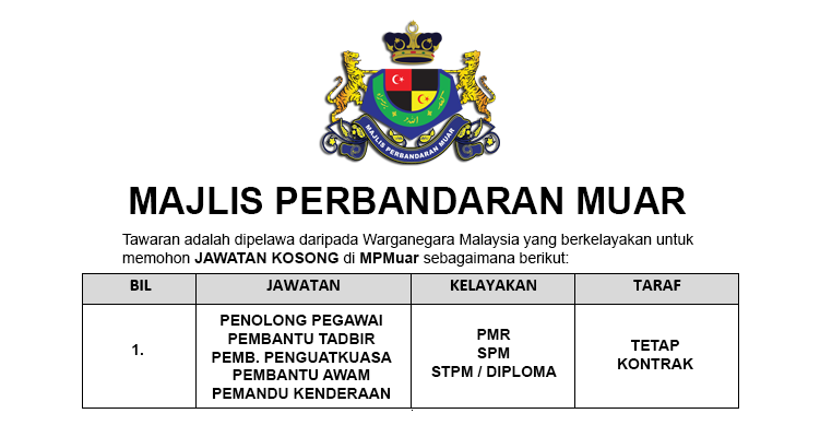 Jawatan Kosong Di Majlis Perbandaran Muar Mohon Sekarang Jobcari Com Jawatan Kosong Terkini