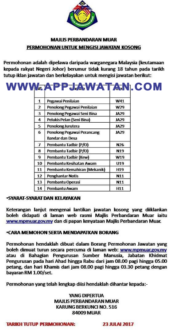 Jawatan Kosong Kerajaan Di Majlis Perbandaran Muar 21 Julai 2017 Appjawatan Malaysia