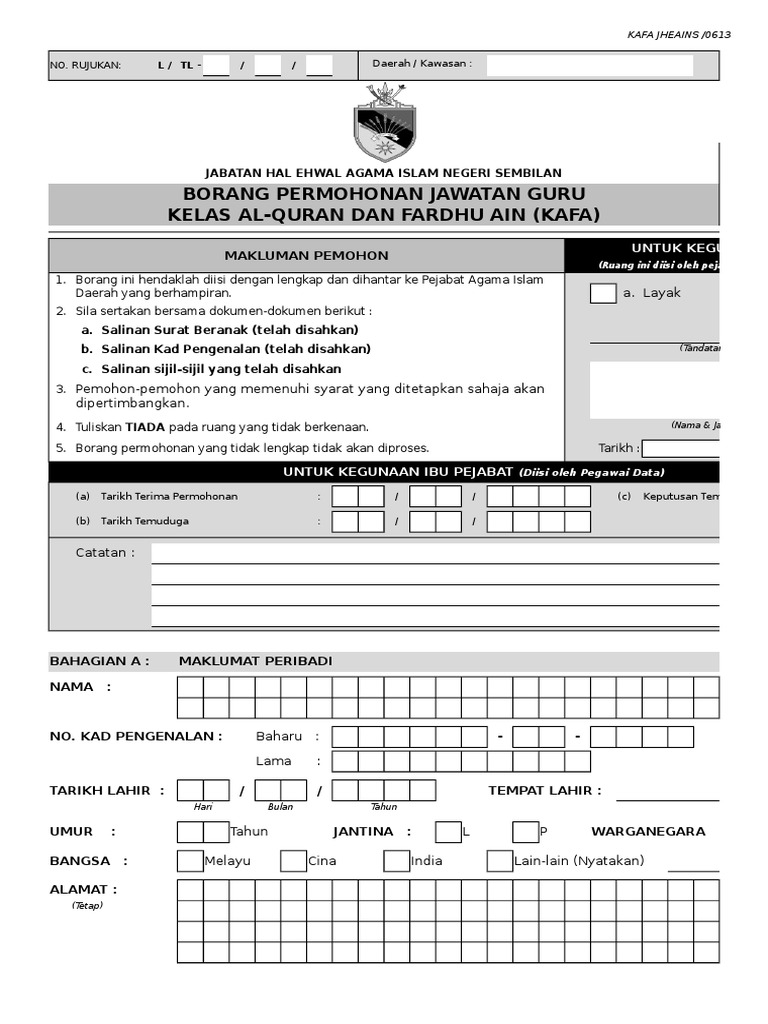 F 1 Butiran Permohonan Borang Negeri Sembilan