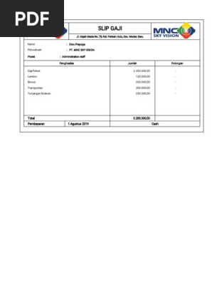 Slip Gaji Total 3 285 000 00 Pembayaran 1 Agustus 2019 Cash