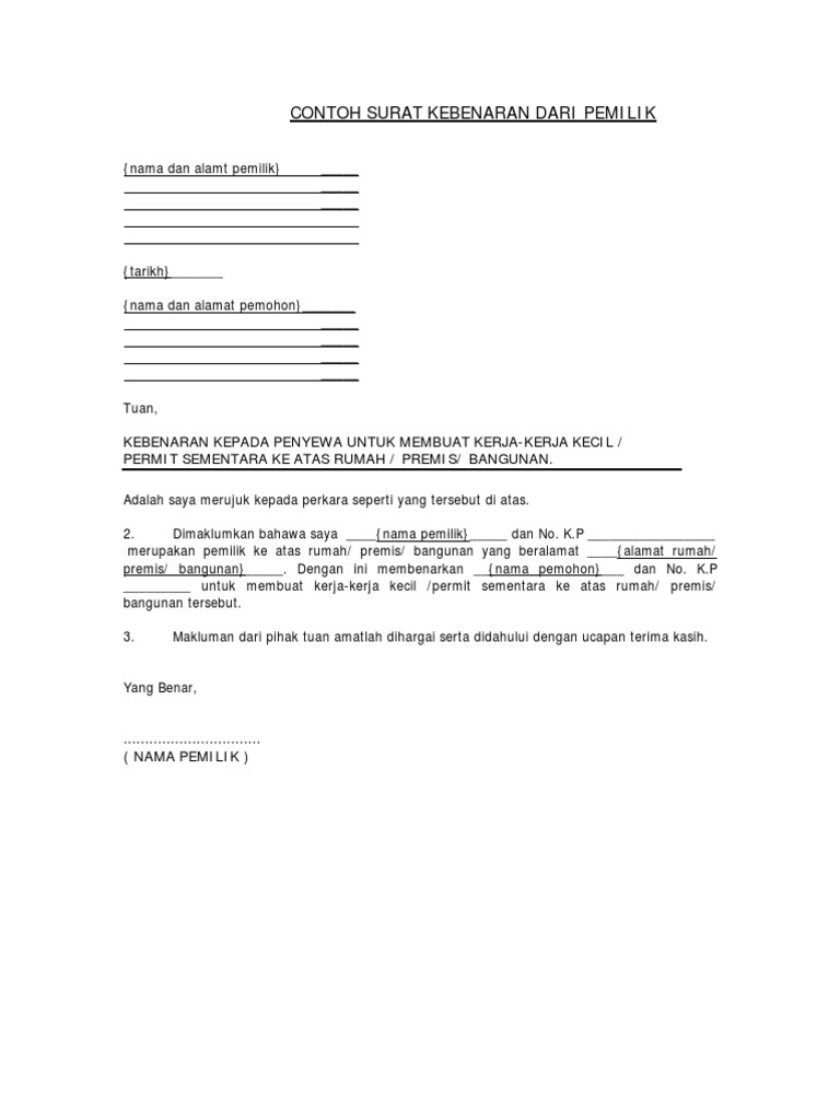 Pdf Contoh Surat Kebenaran Dari Pemilik Mr Z Academia Edu